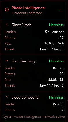 The Pirate Intelligence Panel on the far right of your screen details WHERE the current Pirate Hideouts were last reported. They don’t appear on the Mini Map so you will need to use their co-ordinate positioning to find them, OR a much simpler way is to fly in the direction of the ARROW next to the hideout name. As you get closer, it will home you in on the exact location.